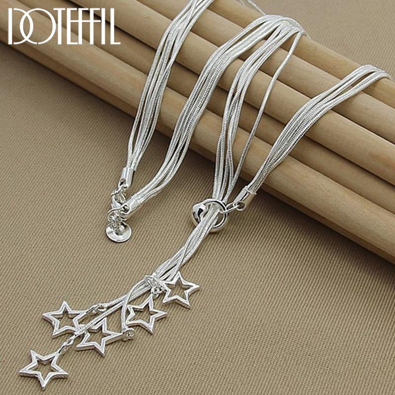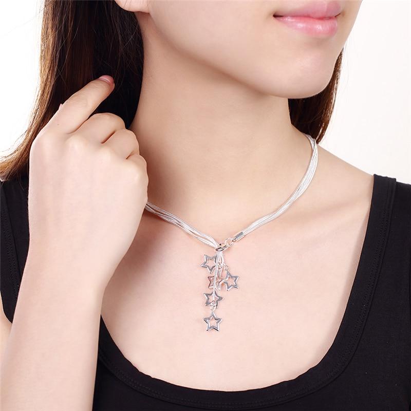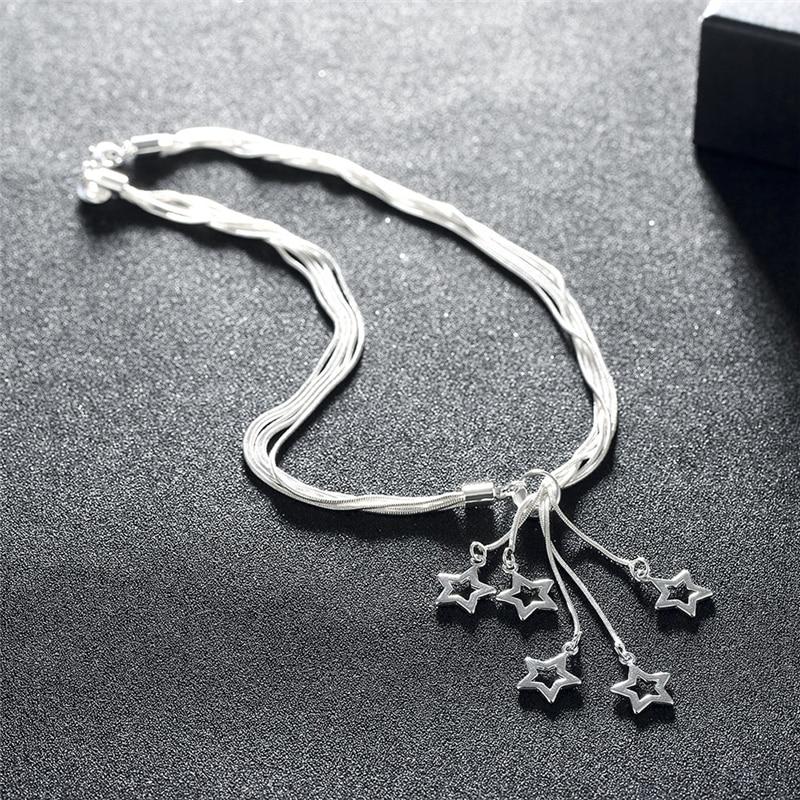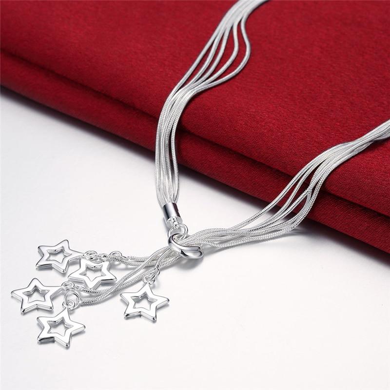 Ожерелье с подвеской в виде пяти звезд из стерлингового серебра 925 пробы, 18-дюймовая цепочка в виде змеи для женщин, свадебные украшения для помолвки