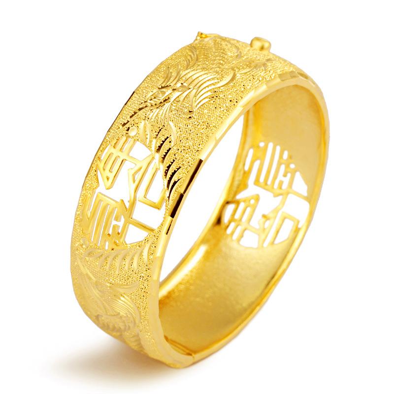 Позолоченный винтажный тонкий браслет с драконом и фениксом, имитация золотых украшений