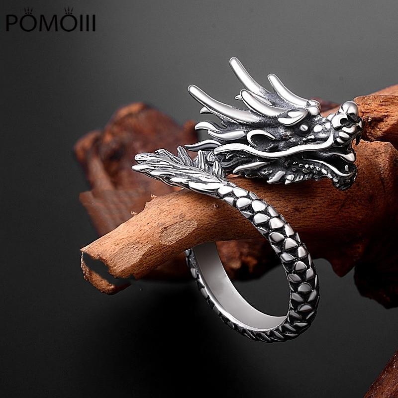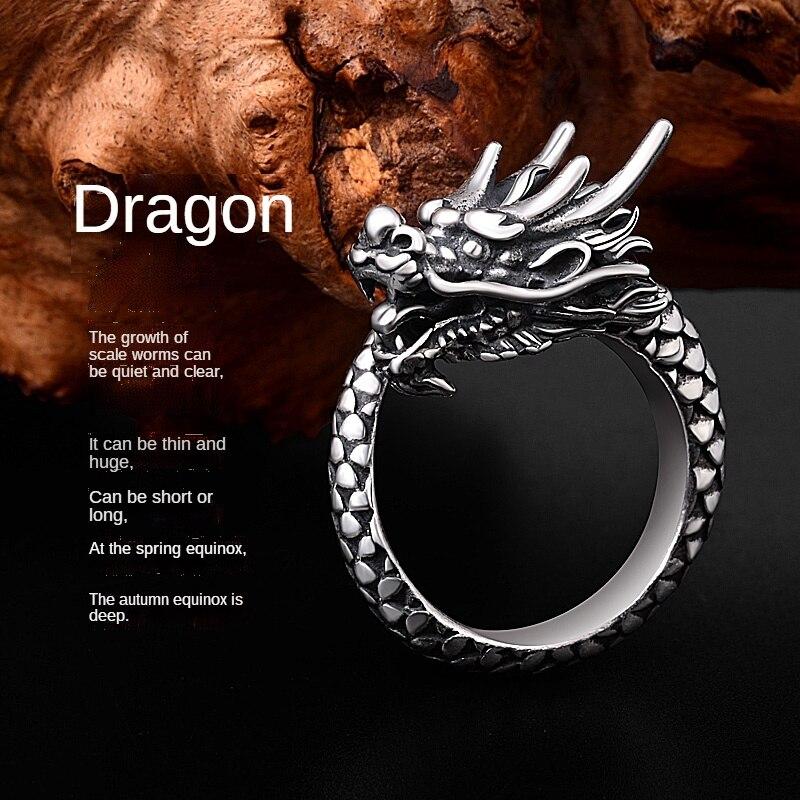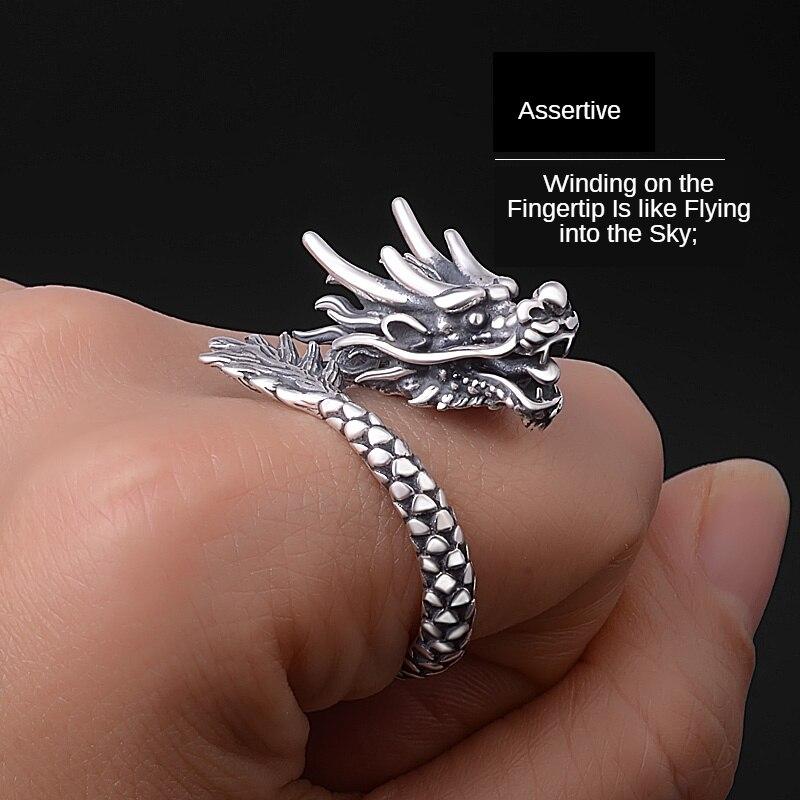Подлинное серебро S990Персонализированное кольцо с драконом, тайское серебряное мужское и женское ретро-мода Открытое кольцо-властелин, ювелирный подарок