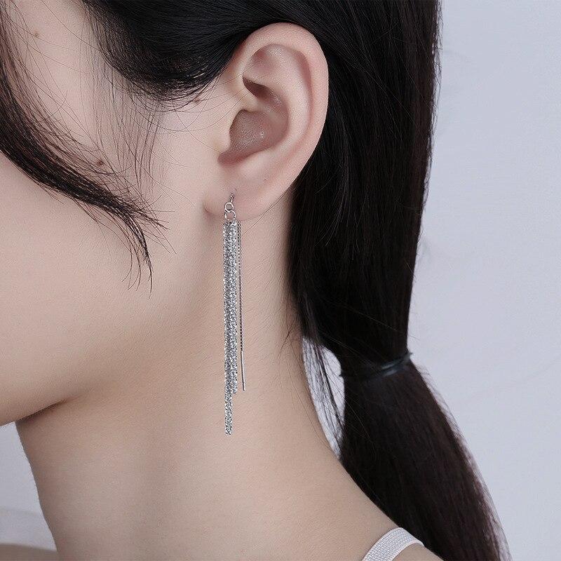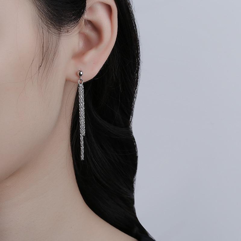 925 пробы стерлингового серебра кисточка сверкающая длинная подвеска серьги для женщин девочек вечеринка свадебные украшения Eh248