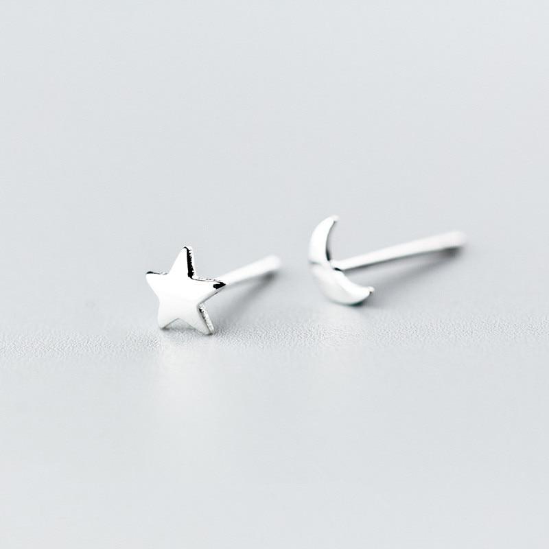 Модные серебряные женские милые серьги-гвоздики со звездами и луной для школьниц, свадебные украшения для дочери Eh271