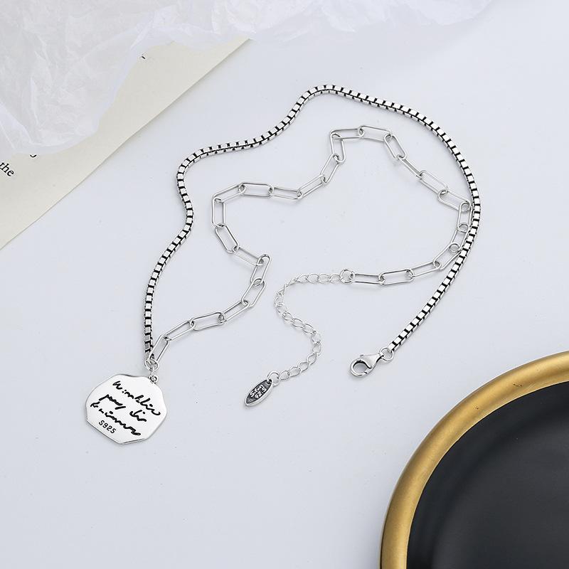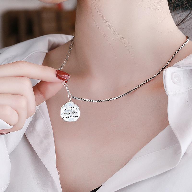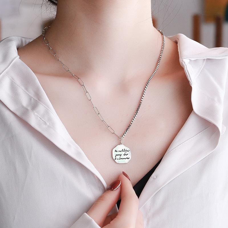 S925 Sterling Silver Letter Round Plate Pendant Necklace Ins Hip-hop Wild Clavicle Chain