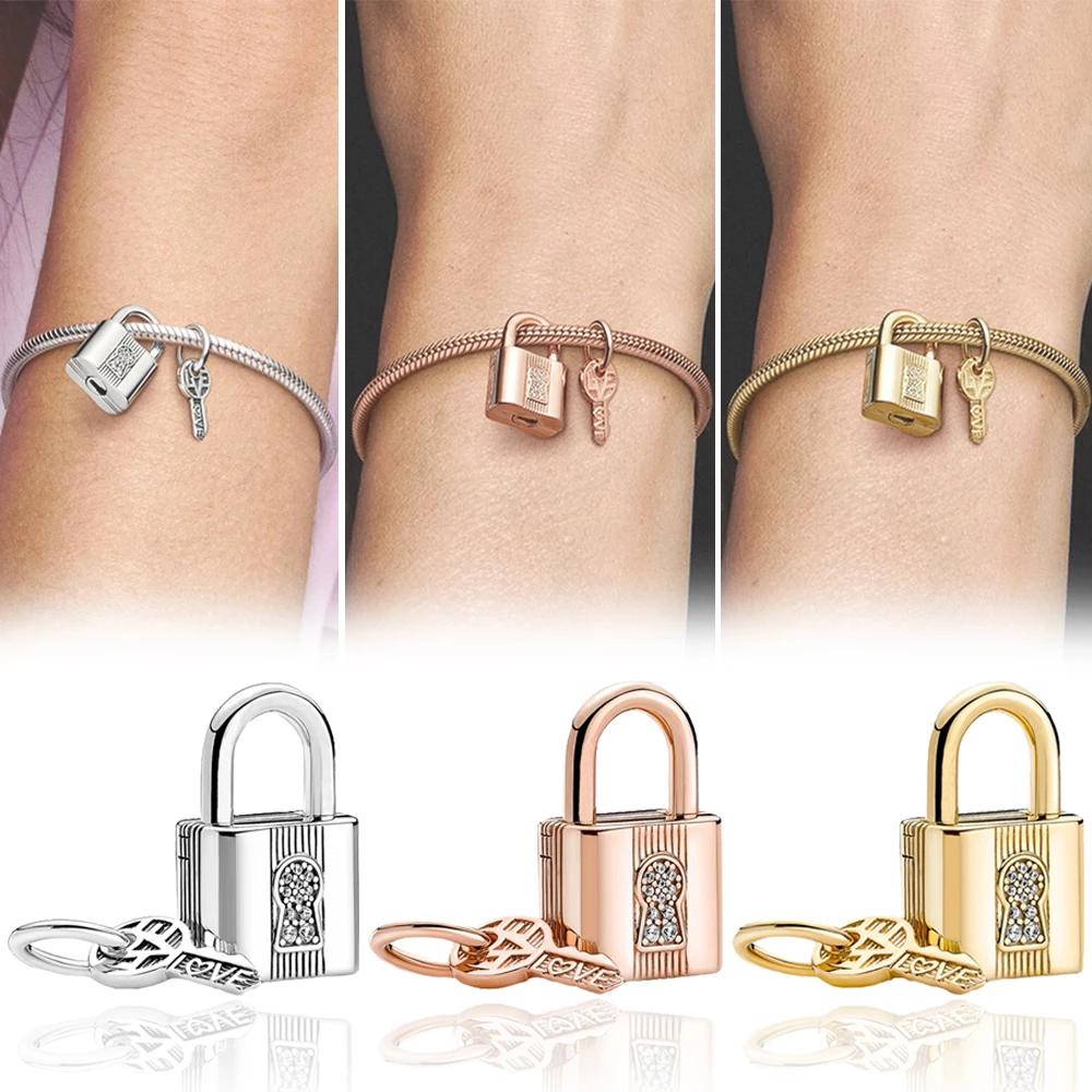 Новый замок ключ шарм 925 стерлингового серебра оригинальный браслет шарм бусины для женщин ювелирные изделия подарки