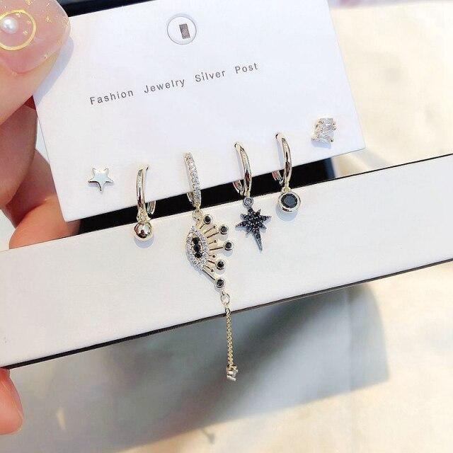 Новейший дизайн, комплект серег-колец в форме звезд с синими фианитами, модные серьги с микро-инкрустацией из циркония для женщин, комплект из 6 предметов