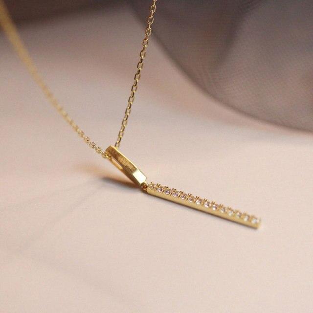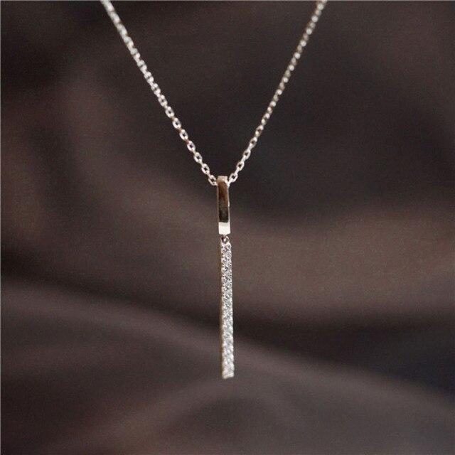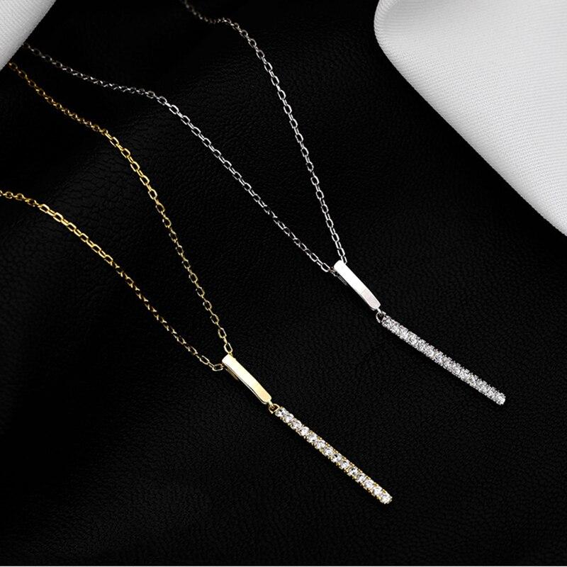 Ожерелье из стерлингового серебра 925 пробы для женщин, длинная полоска, цепочка на ключицу с фианитами, изящные ювелирные изделия, подарки S-N739