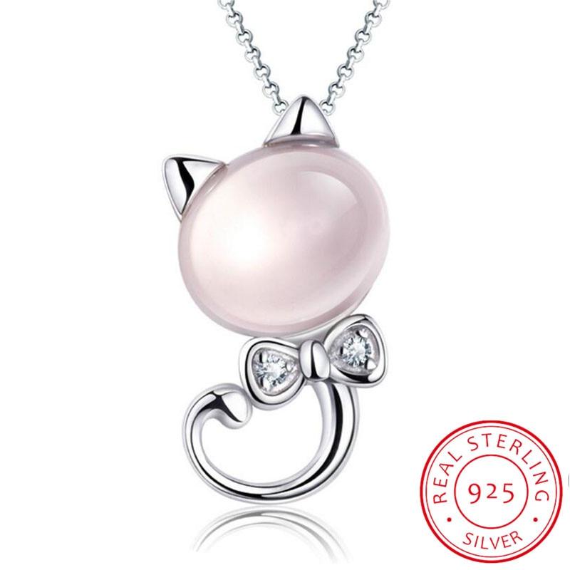 Ожерелье с подвеской в виде кошки из розового лунного камня 925 пробы для женщин, подарочное ожерелье из звеньевой цепи 45 см, подарок на вечеринку в честь Дня святого Валентина — купить товар онлайн с бесплатной доставкой по всему миру!
