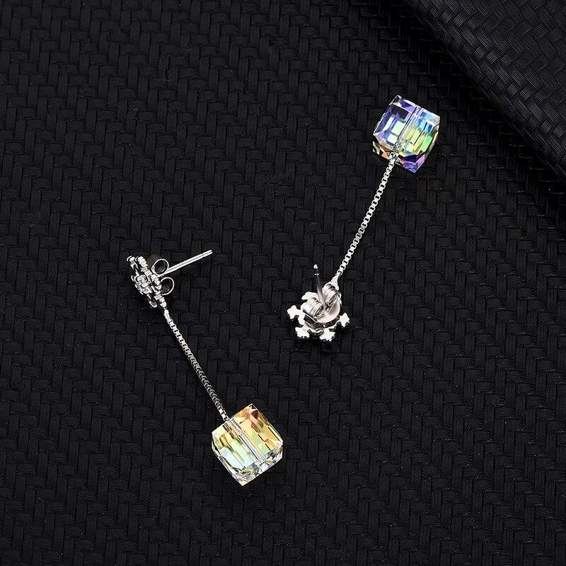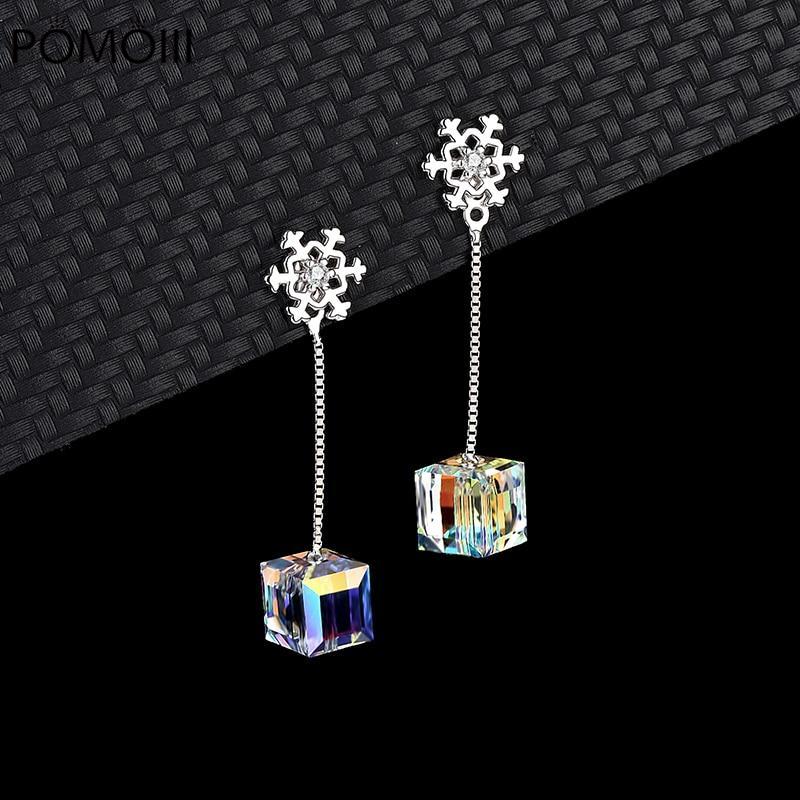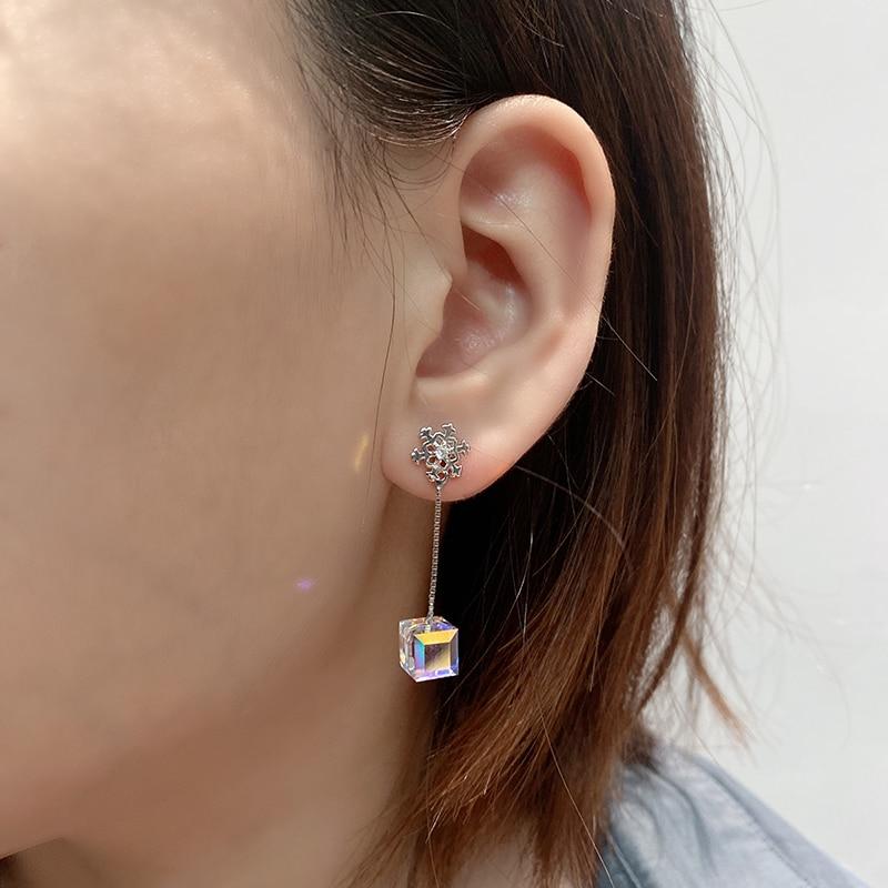 Серьги из стерлингового серебра 925 пробы с кристаллами Тессеракта, квадратные серьги-гвоздики с подвесками в виде снежинки и длинной кисточкой