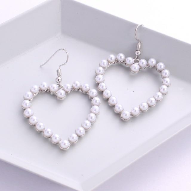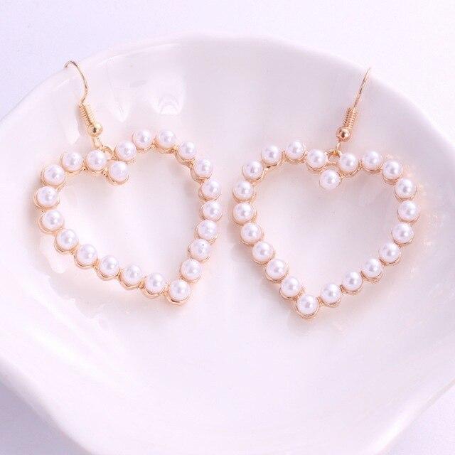 Новые летние милые красочные серьги-бантики для женщин, геометрические серьги с имитацией жемчуга, серьги-сердечки