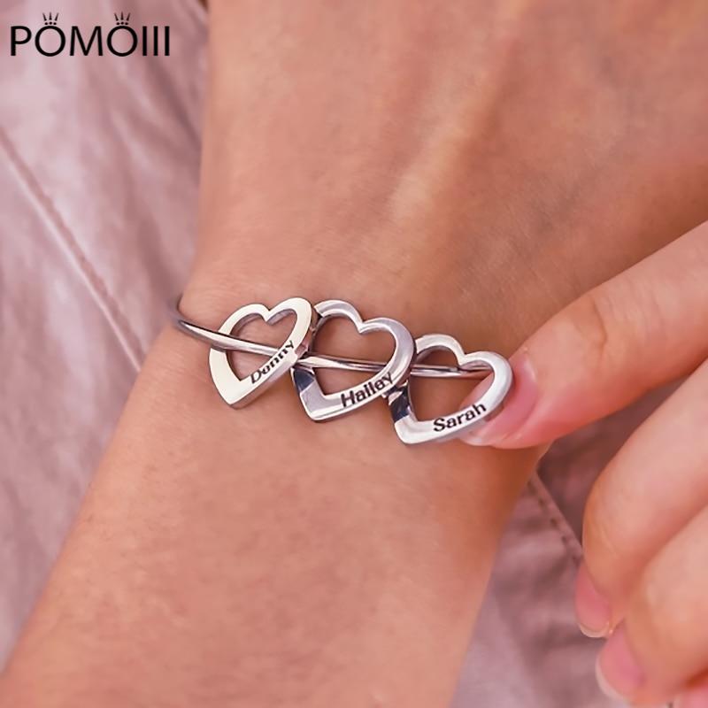 Персонализированный индивидуальный браслет с именем, браслет из нержавеющей стали, выгравированный на табличке с именем, браслеты для женщин, семейные ювелирные изделия