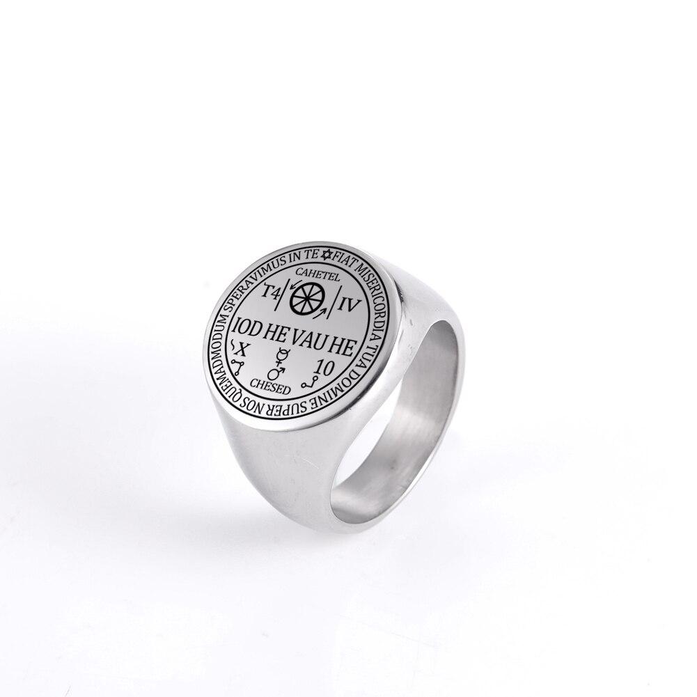 Архангел Кахетель Печать Фортуны Iod He Vau He Соломон Каббала Кольца-амулет для мужчин Викинг из нержавеющей стали Мужская перстень-печатка в стиле панк