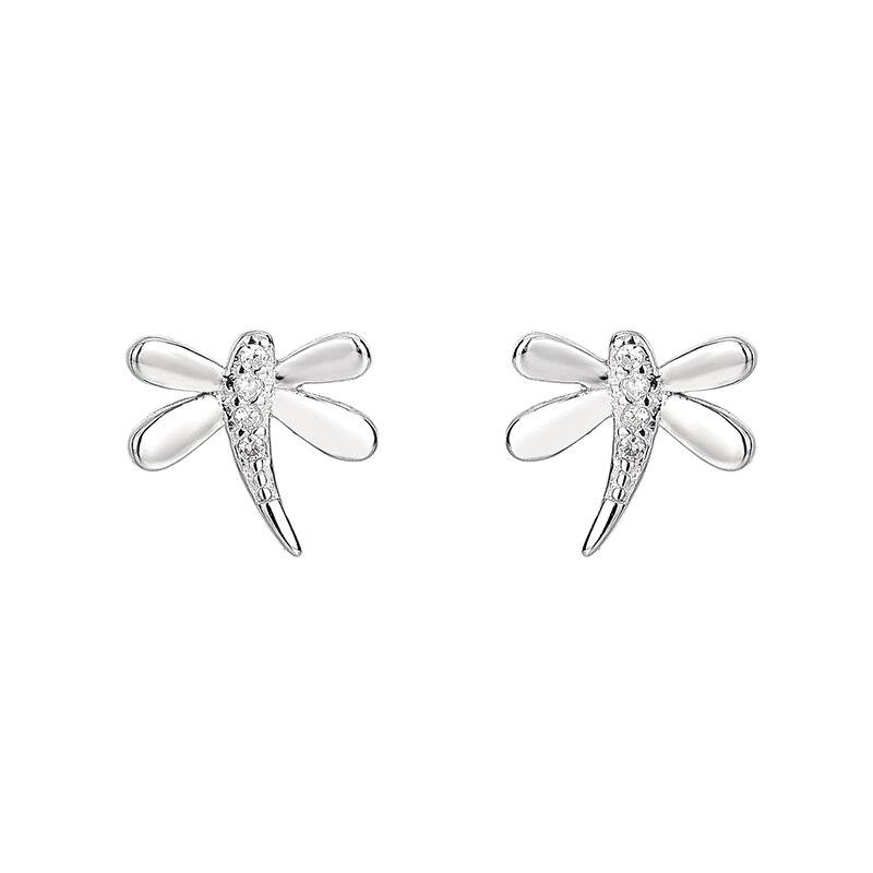 Серьги-гвоздики в виде стрекоз из стерлингового серебра S925 с бриллиантами Женская мода Личность Простота Творчество Животные