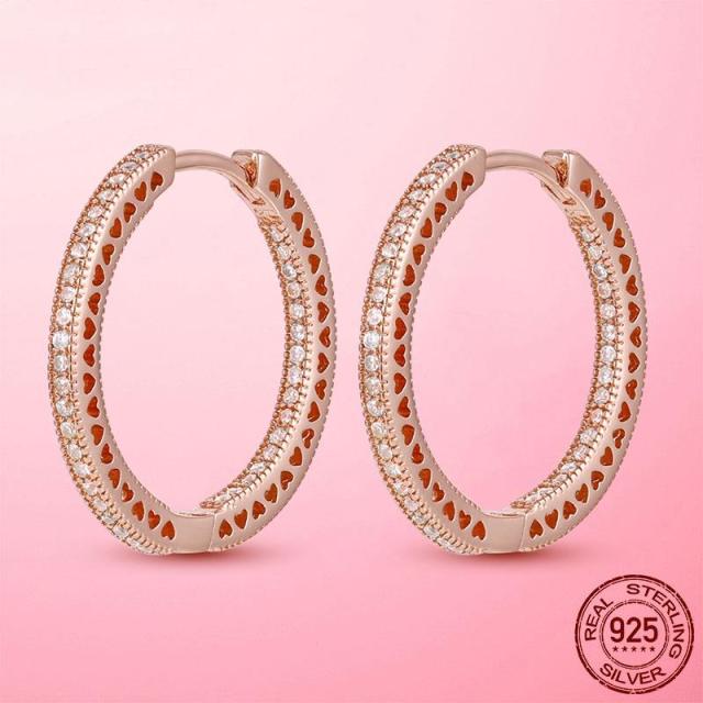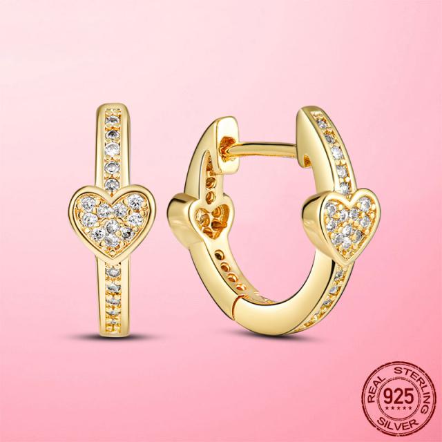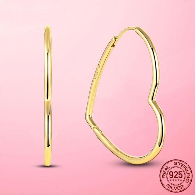 Женские серьги-кольца из стерлингового серебра 925 пробы с золотым цветом в форме сердца, круглые серьги-кольца из циркония для женщин, модные ювелирные изделия