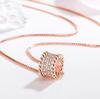 925 Sterling Silver New Woman Fine Jewelry High Quality Crystal Zircon Round Rose Gold Pendant Necklace Length 45CM