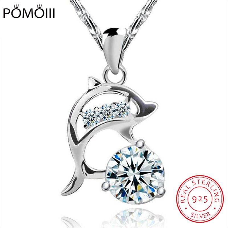 925 Серебряные свадебные украшения AA кубический цирконий дельфин кулон любовь ожерелье для женщин подарок 45 см цепь чокер ожерелье kolye S-N77
