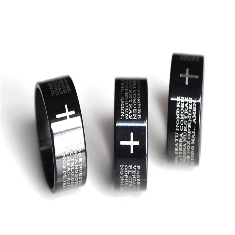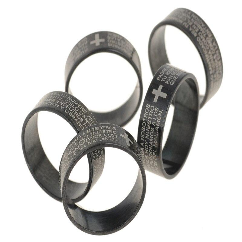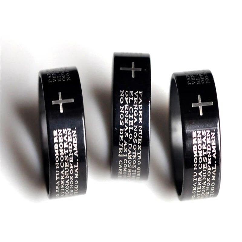 6 шт. черных женских колец из полированной нержавеющей стали для женщин и мужчин, разные размеры 17~21 мм, ювелирные изделия