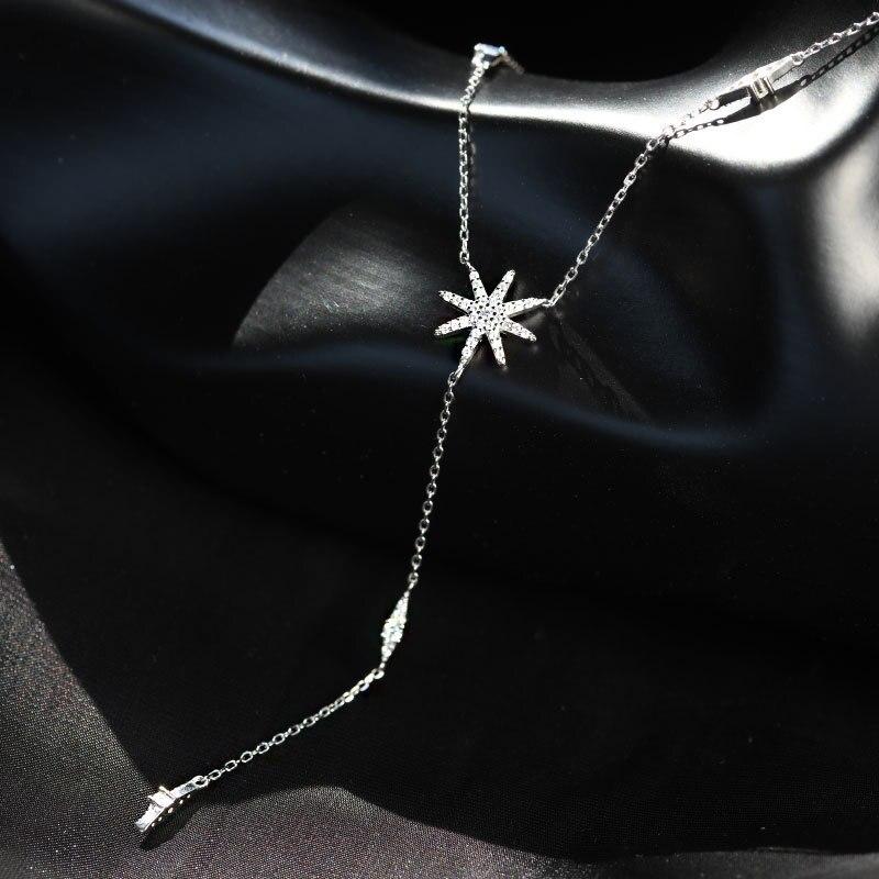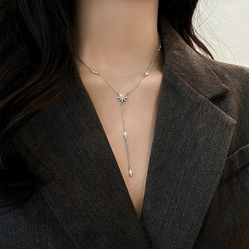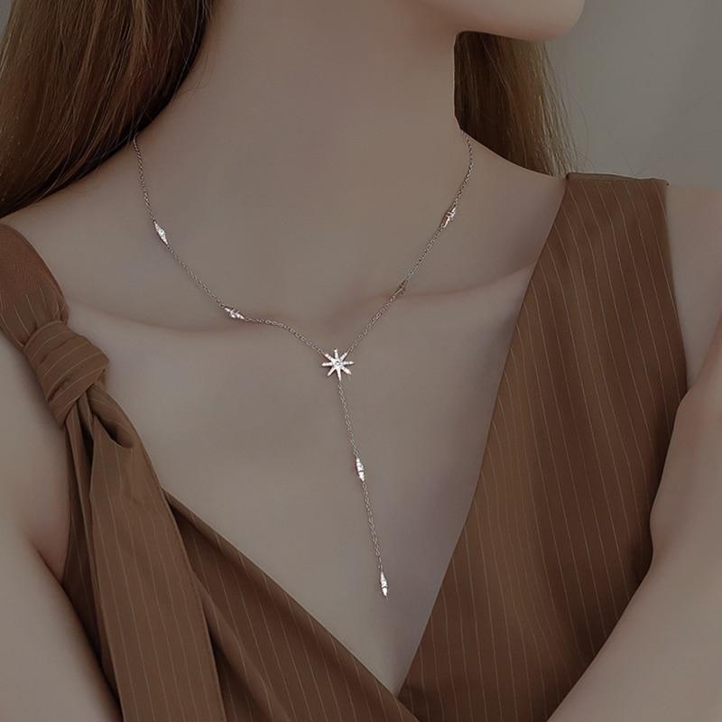 Индивидуальное ожерелье из стерлингового серебра 925 пробы с блестящими бриллиантами и солнечным цветком, простой кулон со звездой, цепочка на ключицу, женские изысканные ювелирные изделия