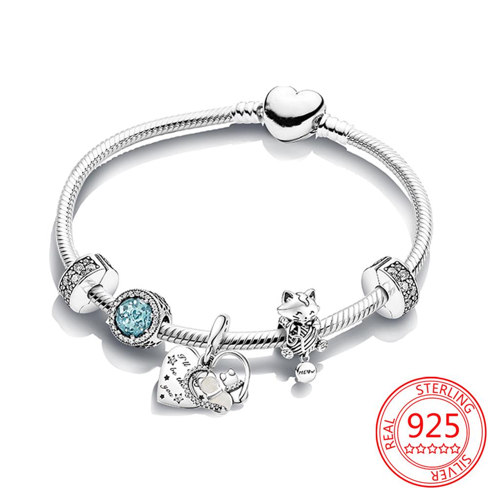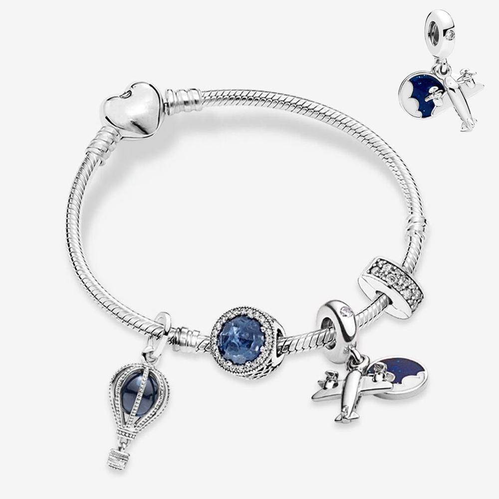 Роскошный браслет S925 стерлингового серебра с блестящим синим небом и блуждающими облаками, комплект серебряных украшений для девочек, подарочный брендовый браслет Moment