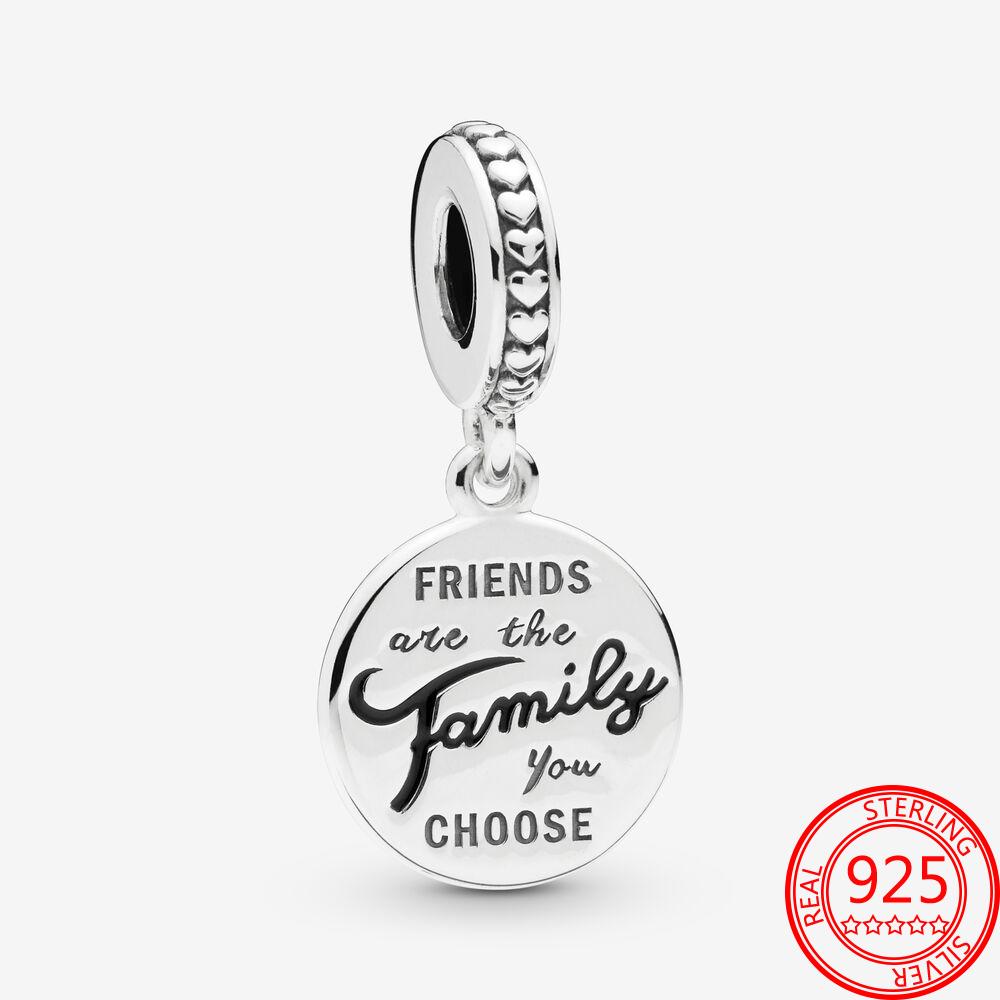 Ювелирные изделия S925 из настоящего серебра 925 пробы, друзья — это семья, которую вы выбираете, подвеска с подвесками, оригинальный модный браслет с подвесками 3 мм