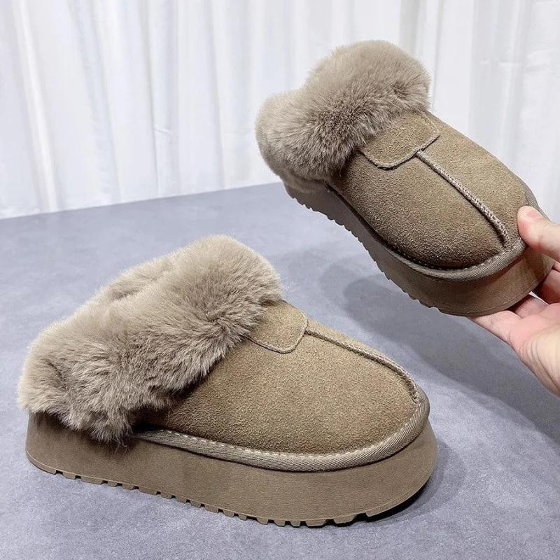 Зимние новые женские утолщенные тапочки с флисовой подкладкой для снега с увеличенным каблуком и высоким верхом, пушистая резиновая подошва
