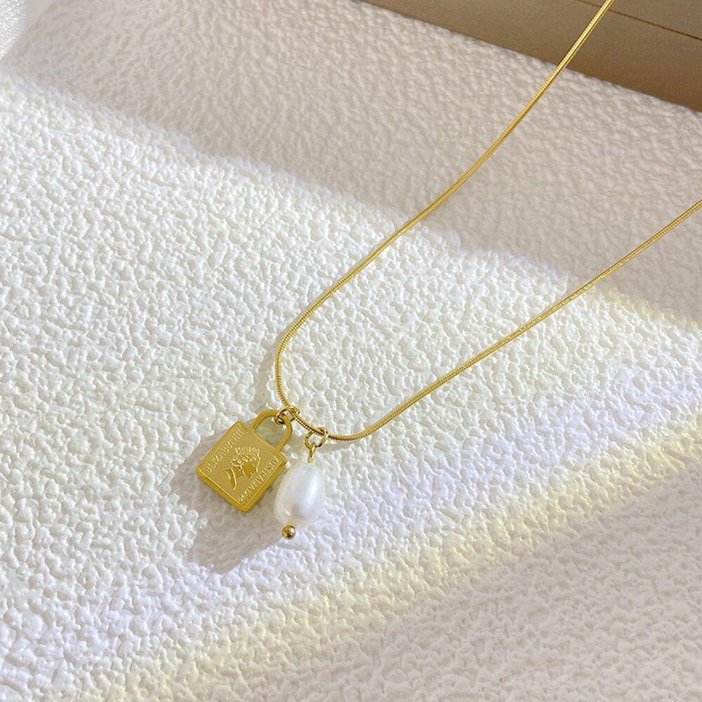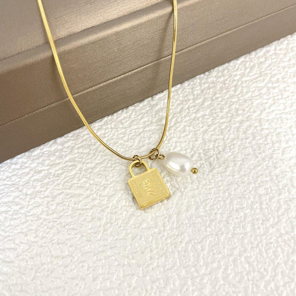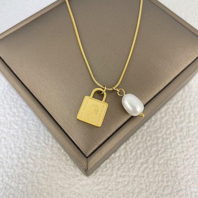 Ins стерео тисненый жемчуг модное ожерелье с подвеской золотой замок ювелирные изделия из нержавеющей стали ретро модные ювелирные изделия изысканный подарок