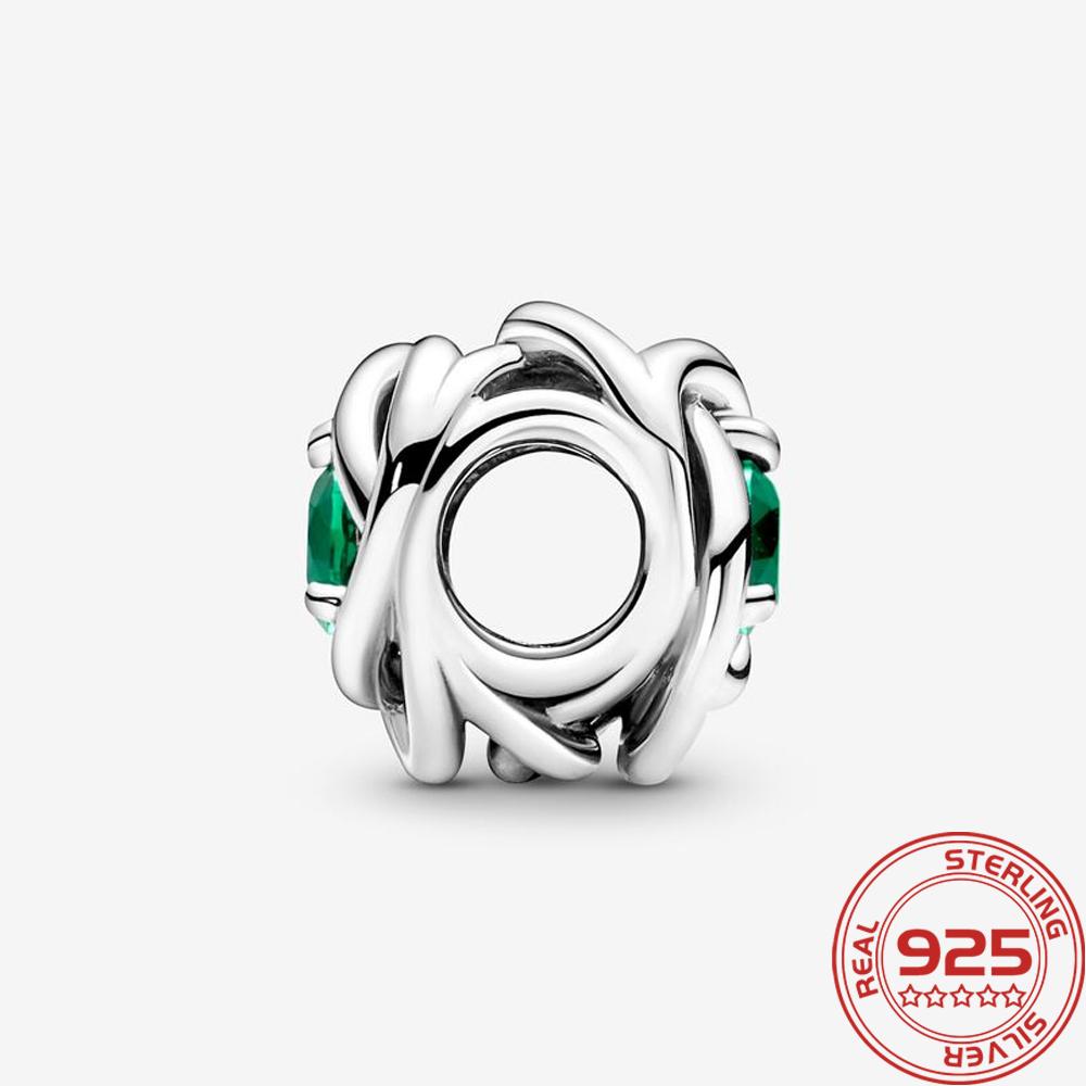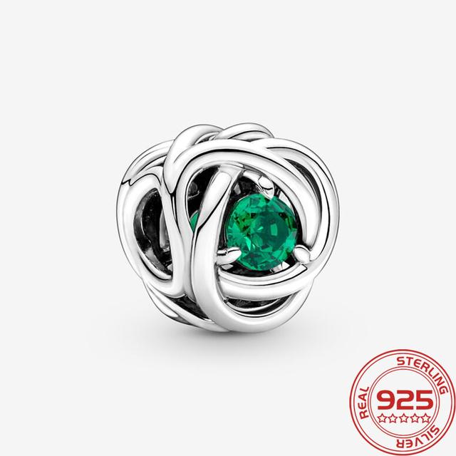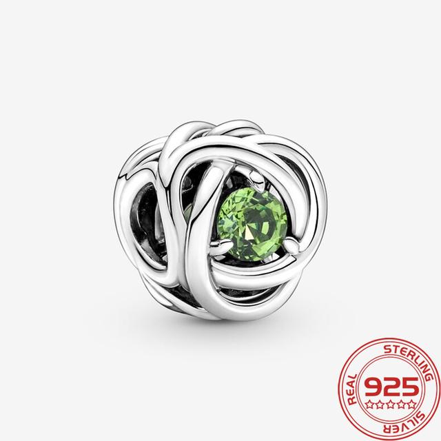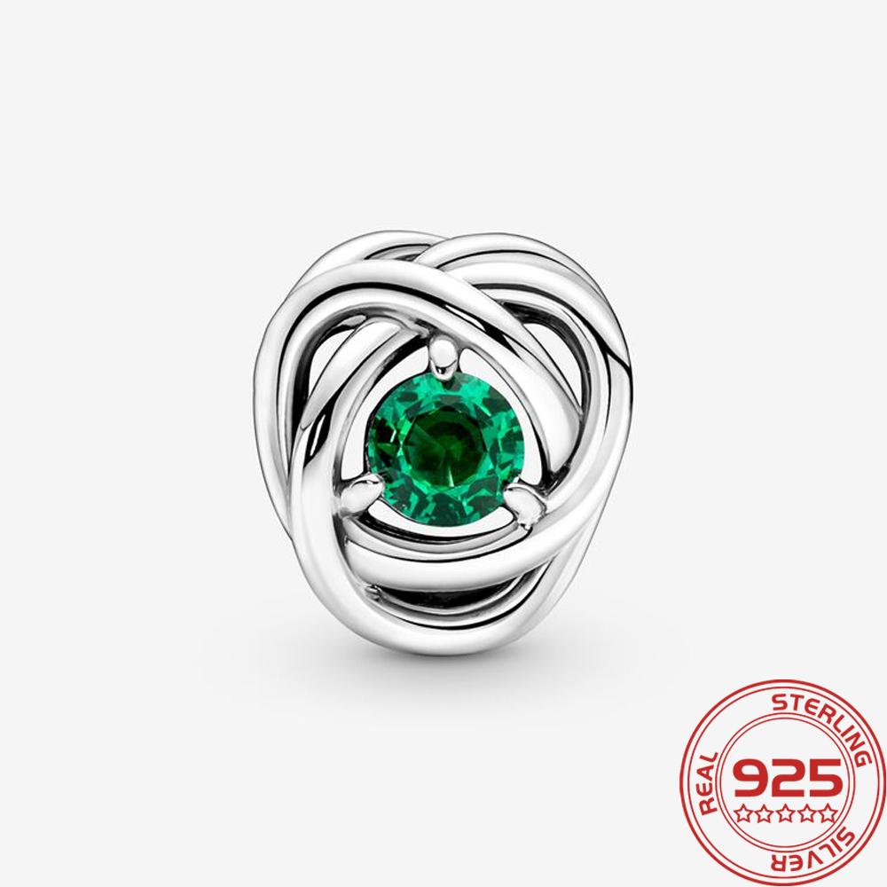 Новый S925 Серебряный Шарм Май Зеленый Камень Рождения Вечность Круг Шарм Подходит Мода 3 мм Браслет DIY Девушка Ожерелье Подвеска Подарок
