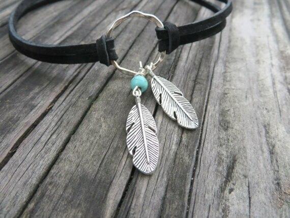 Винтажные серебряные ожерелья с подвесками в виде перьев, кожаное колье-чокер, черный круглый воротник, женское бохо-украшение на шею для вечеринок для женщин