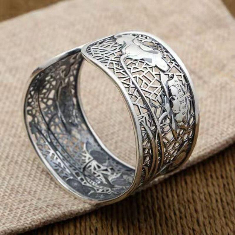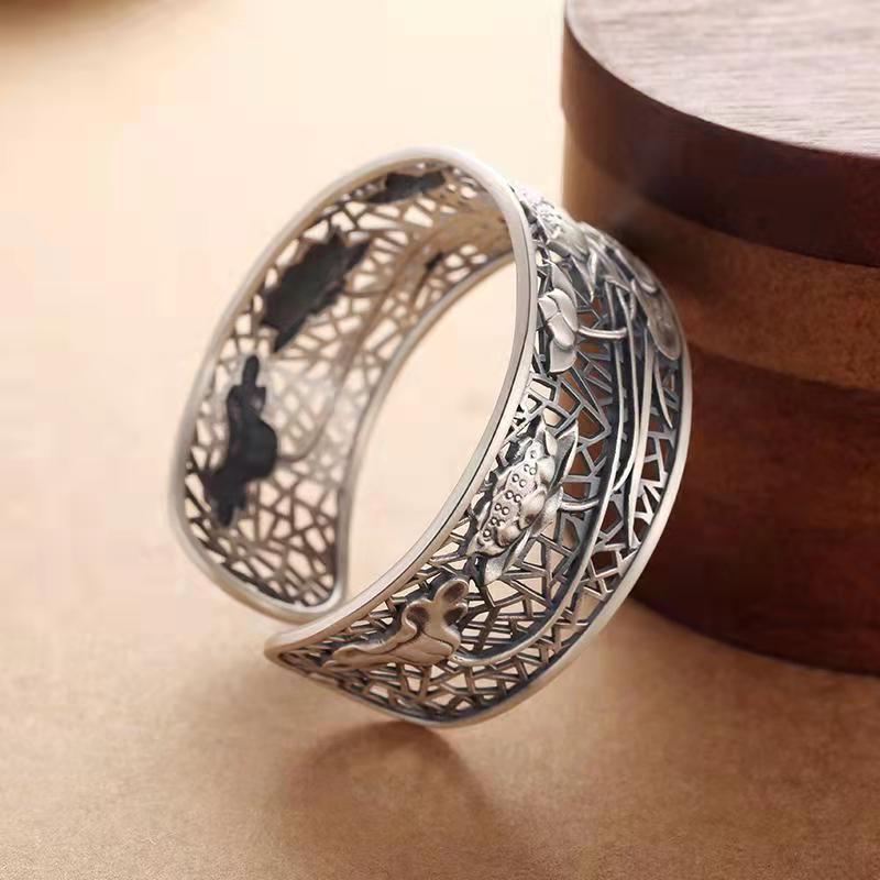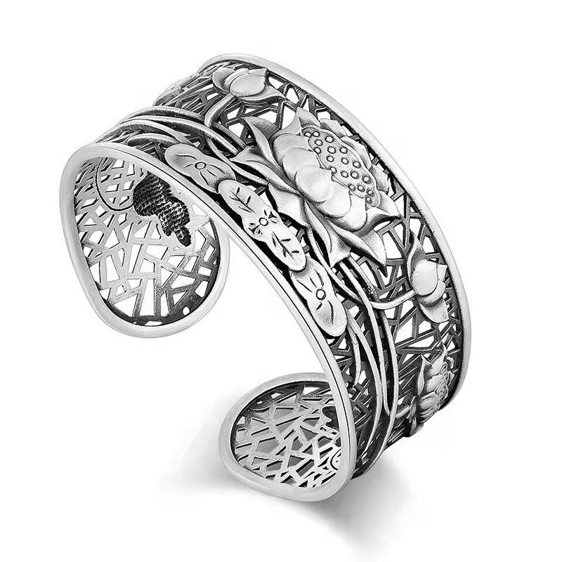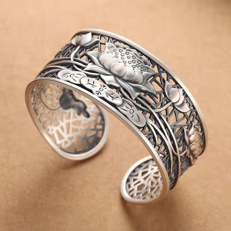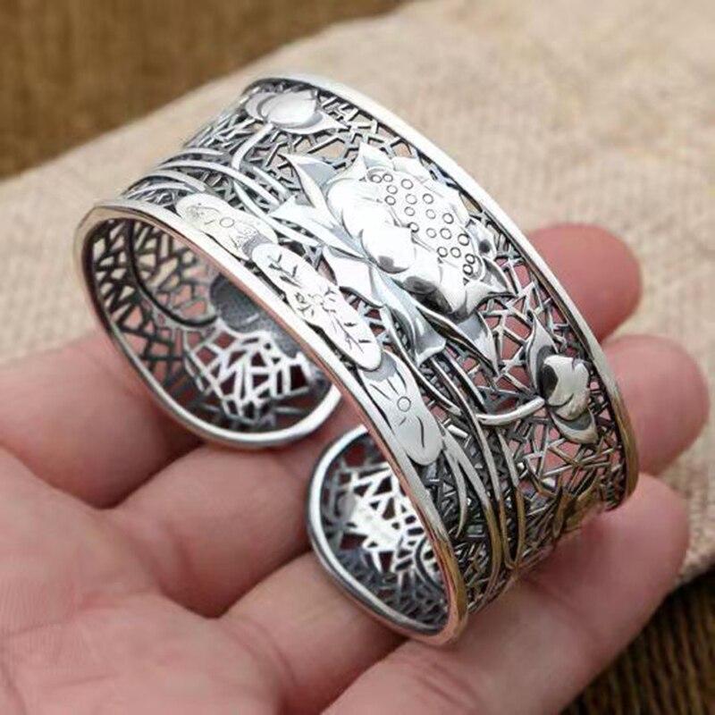 Новый ретро-браслет в этническом стиле, старый супер широкий полый браслет в форме лотоса для мамы и подруги, ювелирные аксессуары