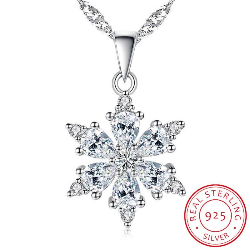 Ювелирные изделия из стерлингового серебра 925 пробы с подвеской в виде снежинки из циркония класса ААА для женщин, подарочное ожерелье с цепочкой 45 см, колье-чокер S-N134 — купить товар онлайн с бесплатной доставкой по всему миру!