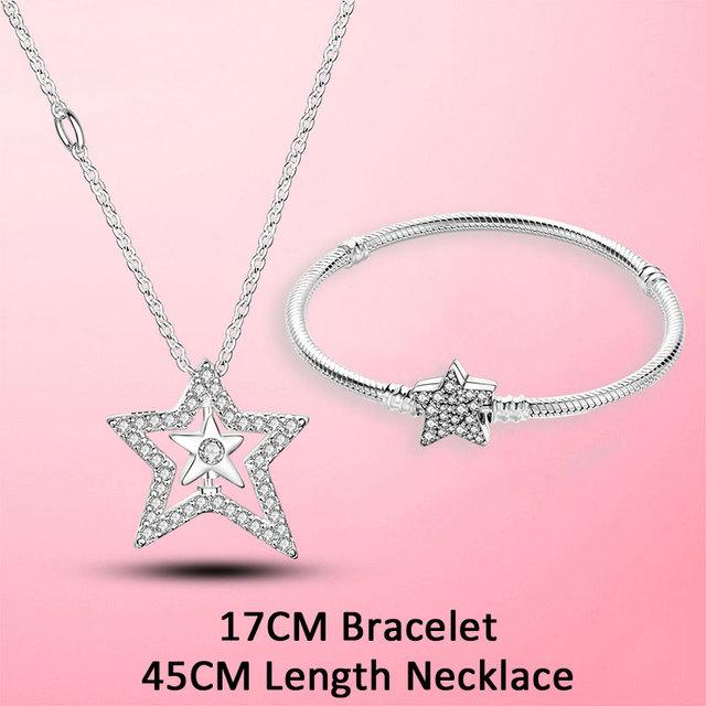 Свадебные женские ювелирные наборы из серебра 925 пробы, звездное ослепительное ожерелье с фианитом и браслетом для женщин, помолвка, изящные ювелирные украшения