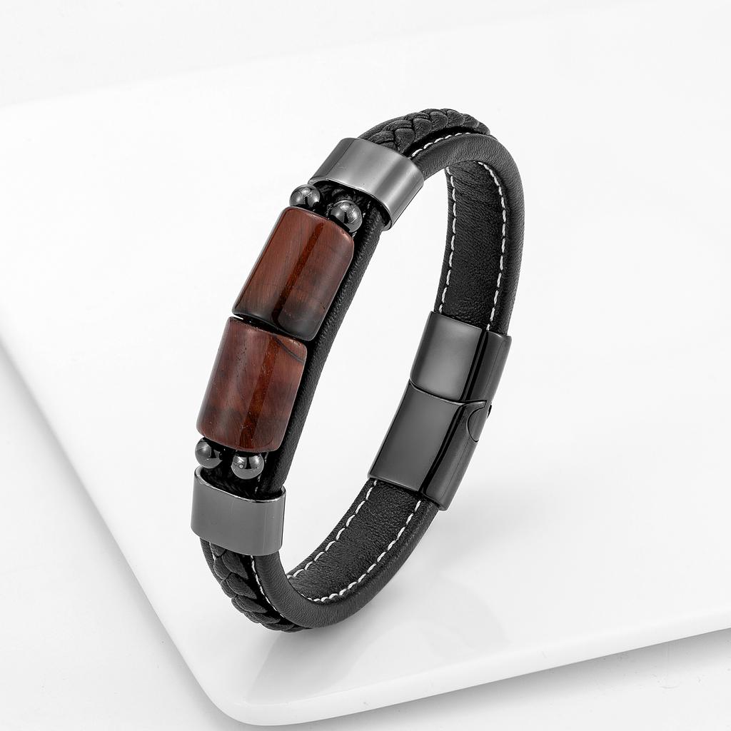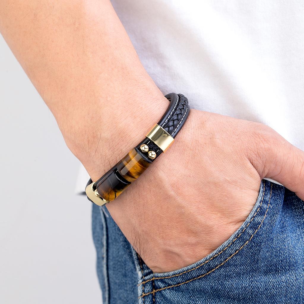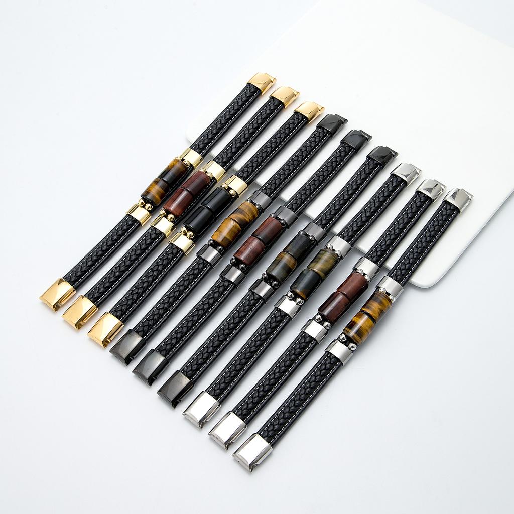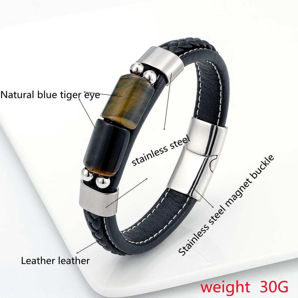 Новый Lucky Board ретро ювелирные изделия натуральный тигровый глаз камень мужской браслет из нержавеющей стали классический черный кожаный веревочный браслет