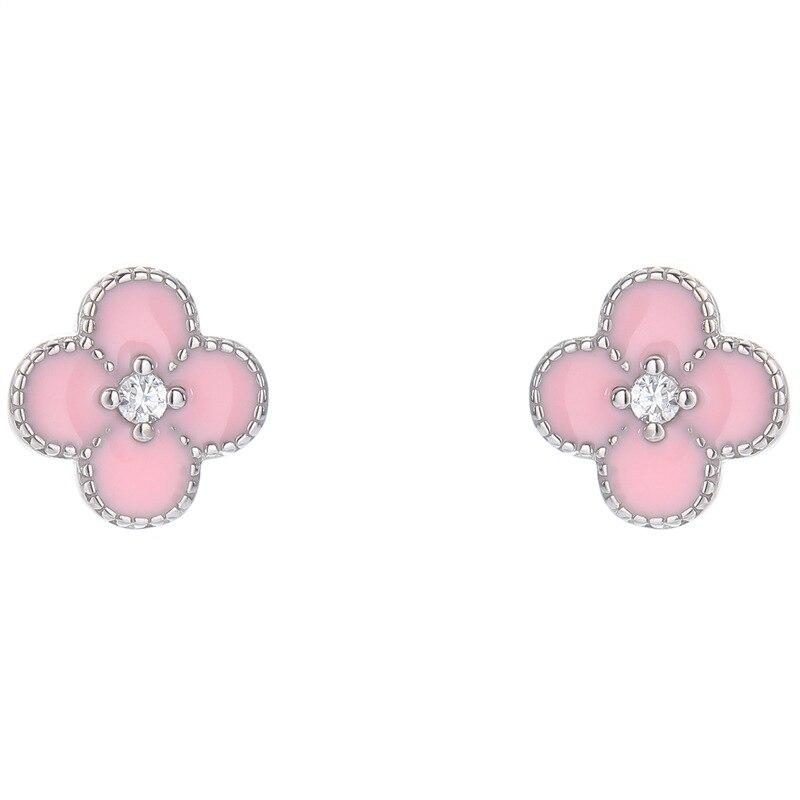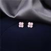 Серьги из стерлингового серебра S925, серьги-гвоздики с четырьмя листами клевера для женщин, розовая наклейка из смолы, украшения для ушей