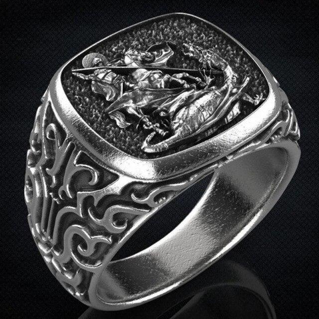 Винтажный стиль, панк, черный, серебристый цвет, духовный тотем убийцы драконов, кольцо из нержавеющей стали, мужской свадебный подарок, ювелирные аксессуары