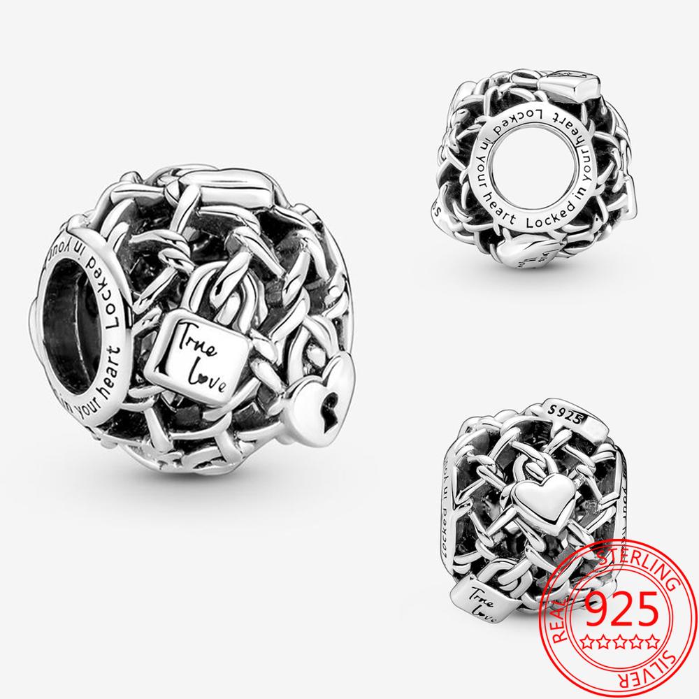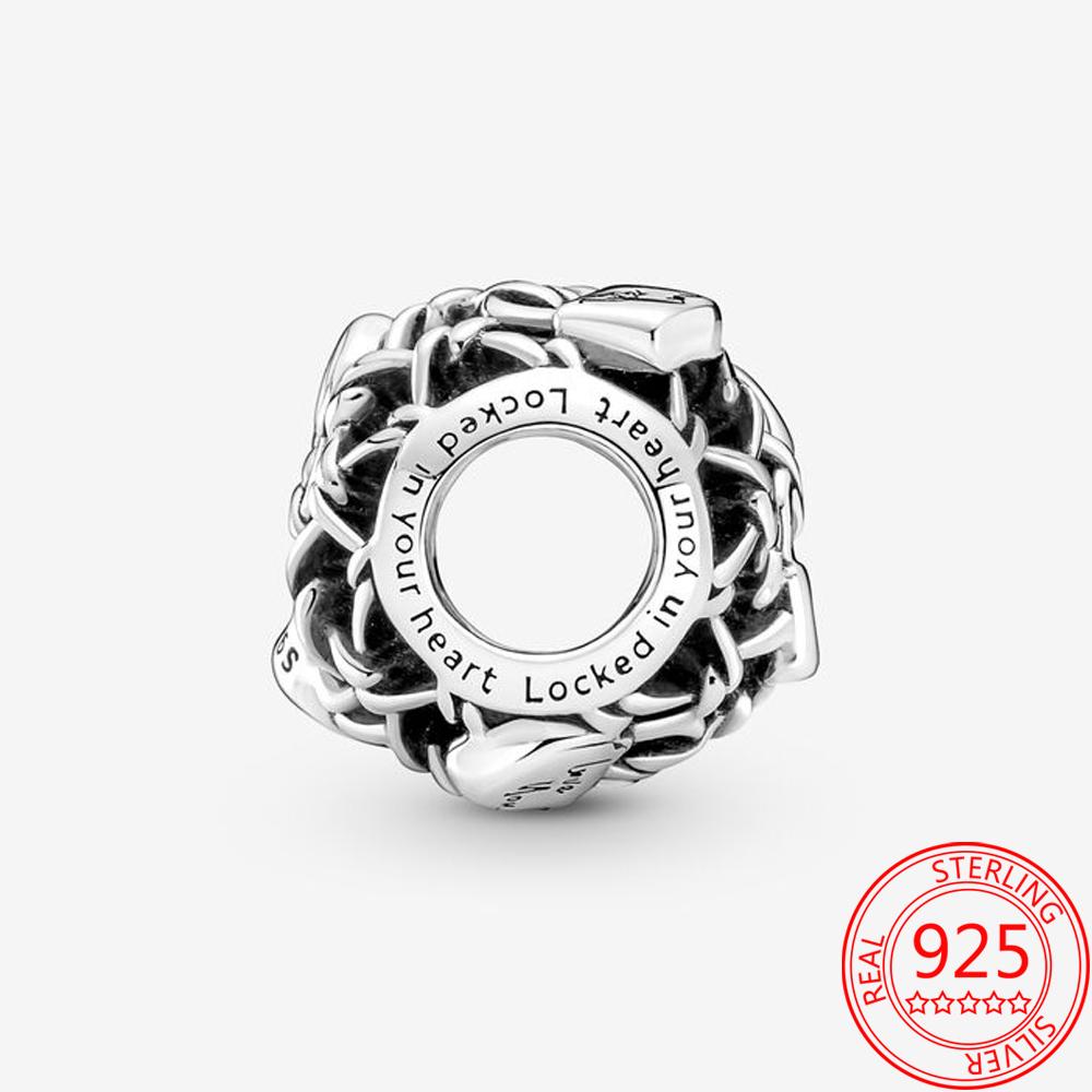 Аутентичный серебряный браслет 925 пробы с подвесками, модный браслет из стерлингового серебра 925 пробы с ажурной цепочкой и подвеской в виде замка, ювелирные аксессуары своими руками