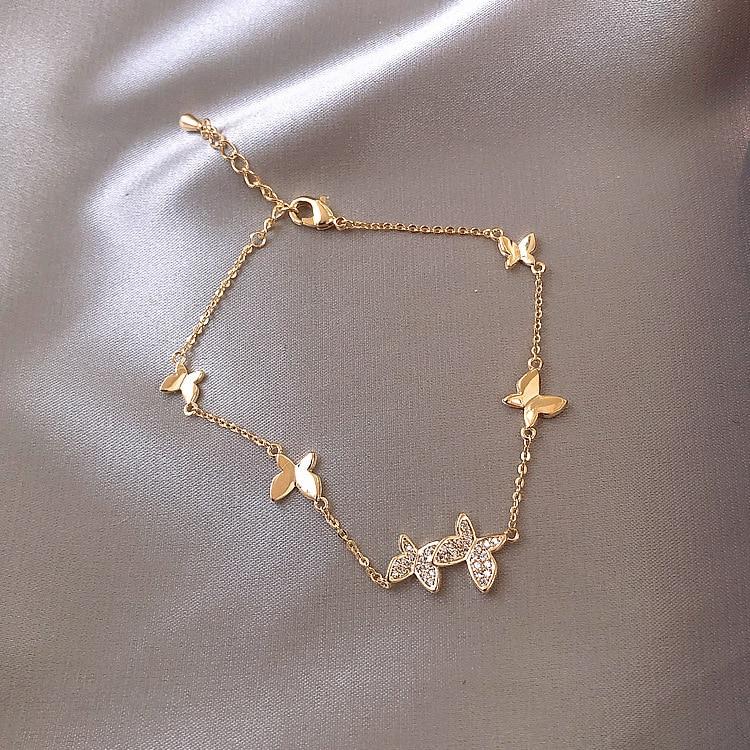 Предотвратить аллергию, свадебный браслет из стерлингового серебра 925 пробы для женщин, пар, классический золотой цвет, ювелирные изделия с кристаллами-бабочками, Sl223