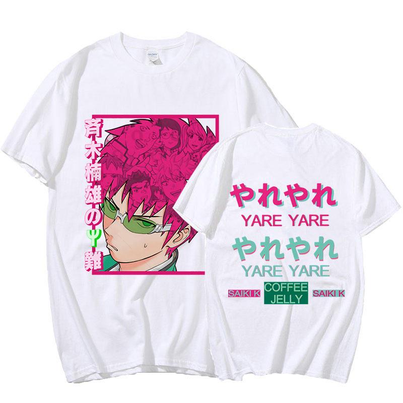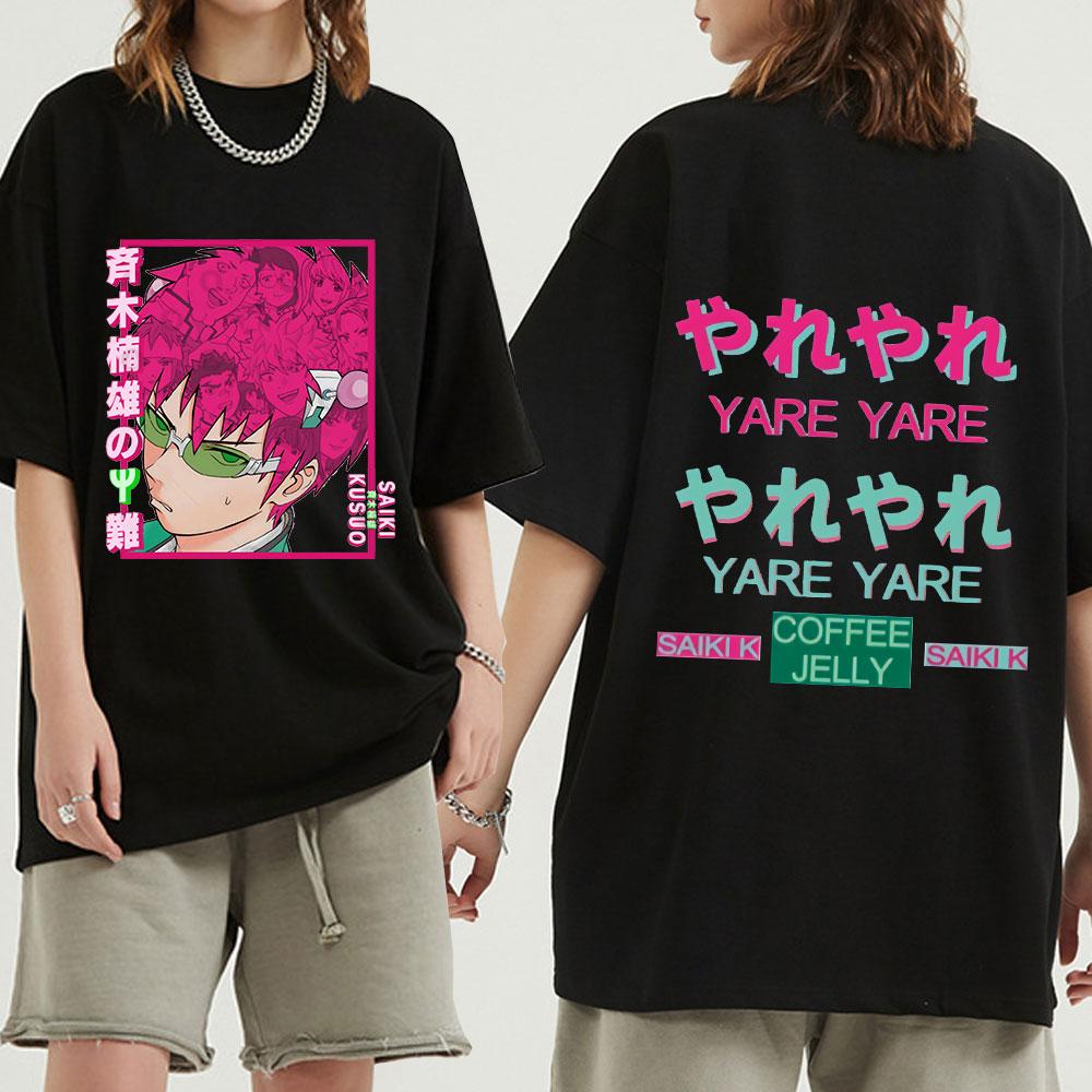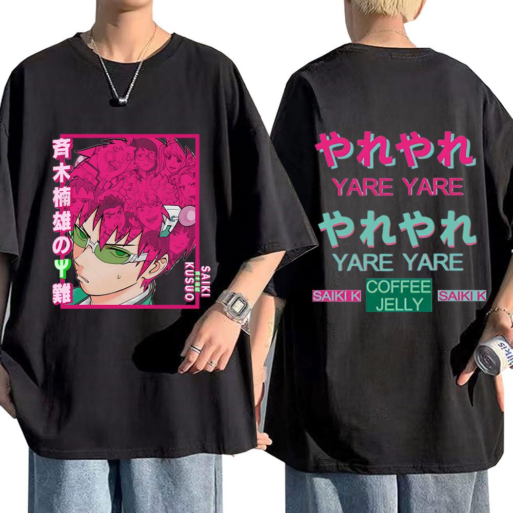 Модная японская аниме-футболка с коротким рукавом «Катастрофическая жизнь Сайки К» с двусторонним принтом Saiki Kusuo Harajuku, повседневные футболки большого размера