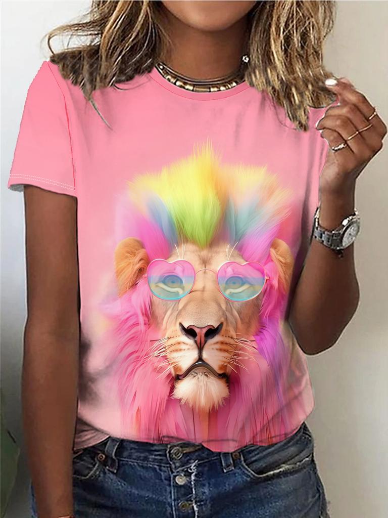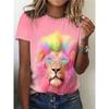 Женская розовая футболка с принтом льва, повседневный топ с короткими рукавами и круглым вырезом на весну и лето