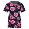 Женские топы с короткими рукавами и карманами, рабочая униформа, футболки с принтом «Цветок и кошка», униформа, халаты с короткими рукавами для женщин