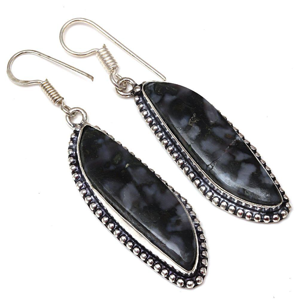 Серебряные серьги ручной работы из драгоценного камня Ларвикит Джаспер 1,5 дюйма