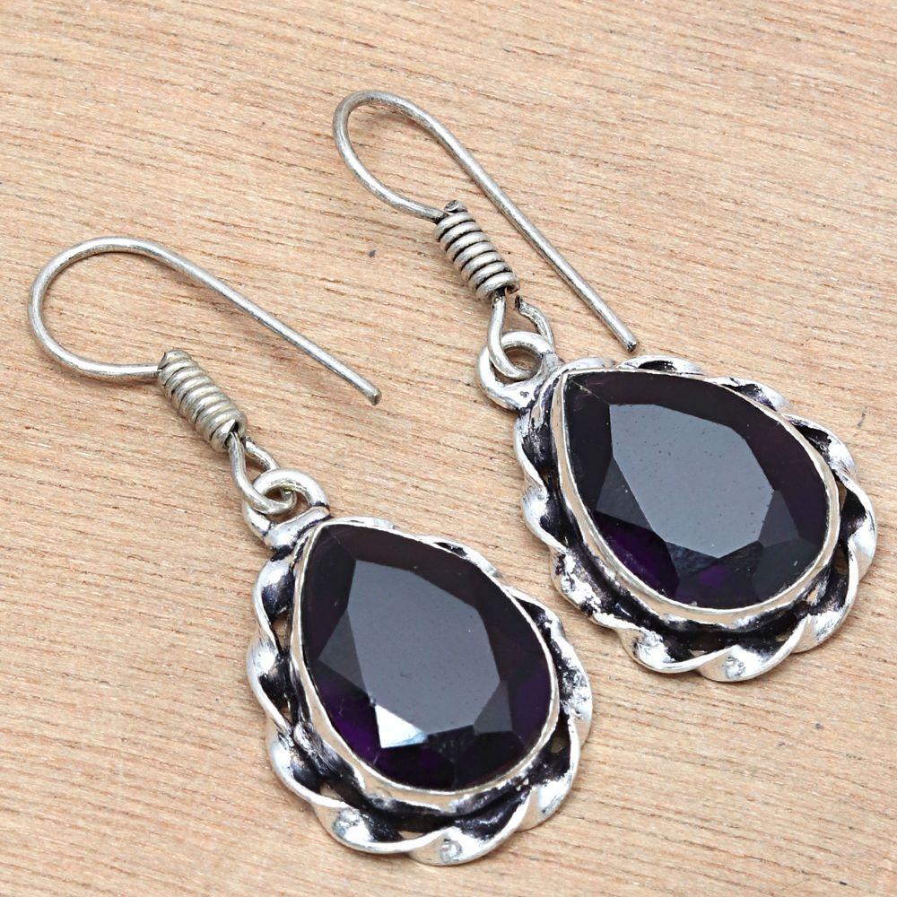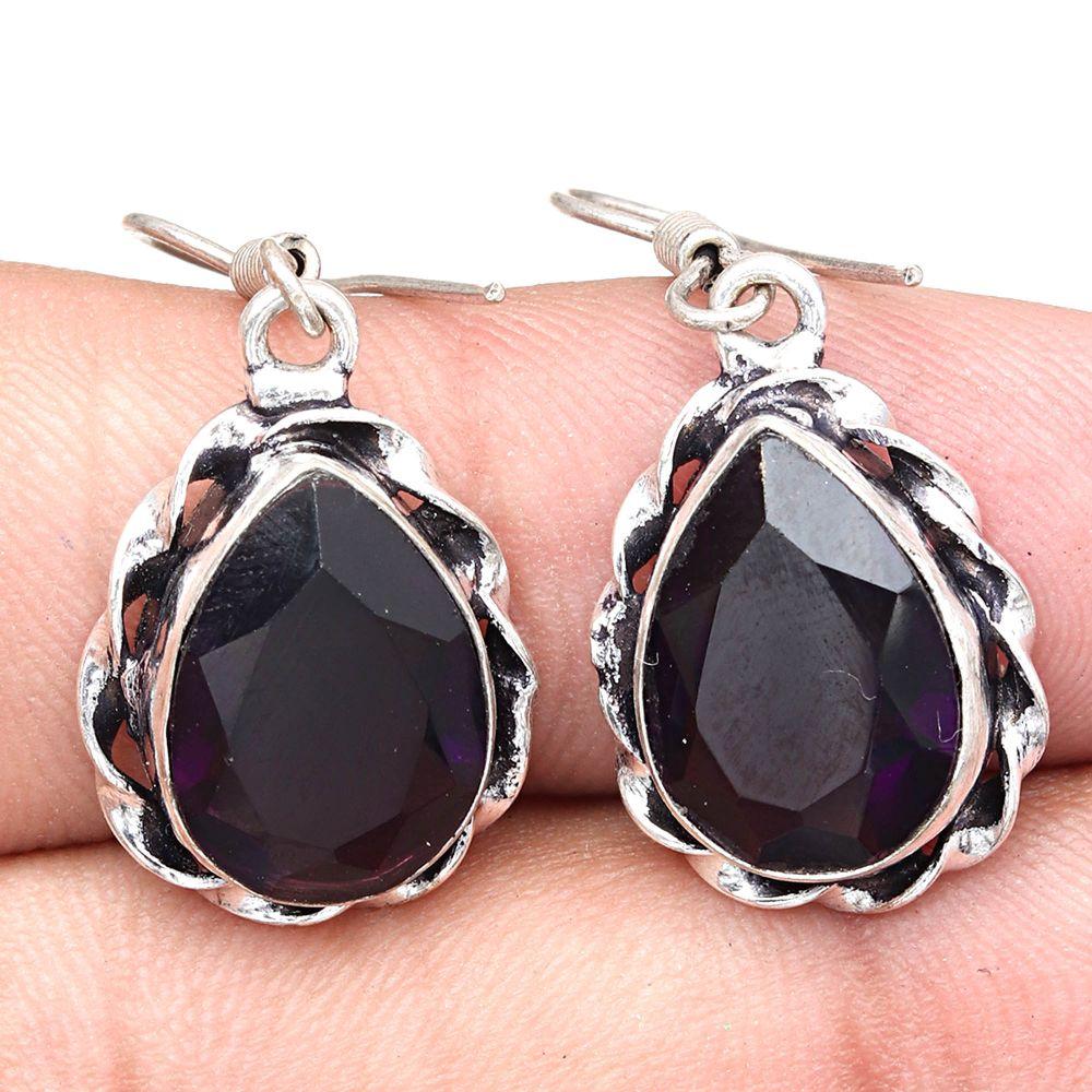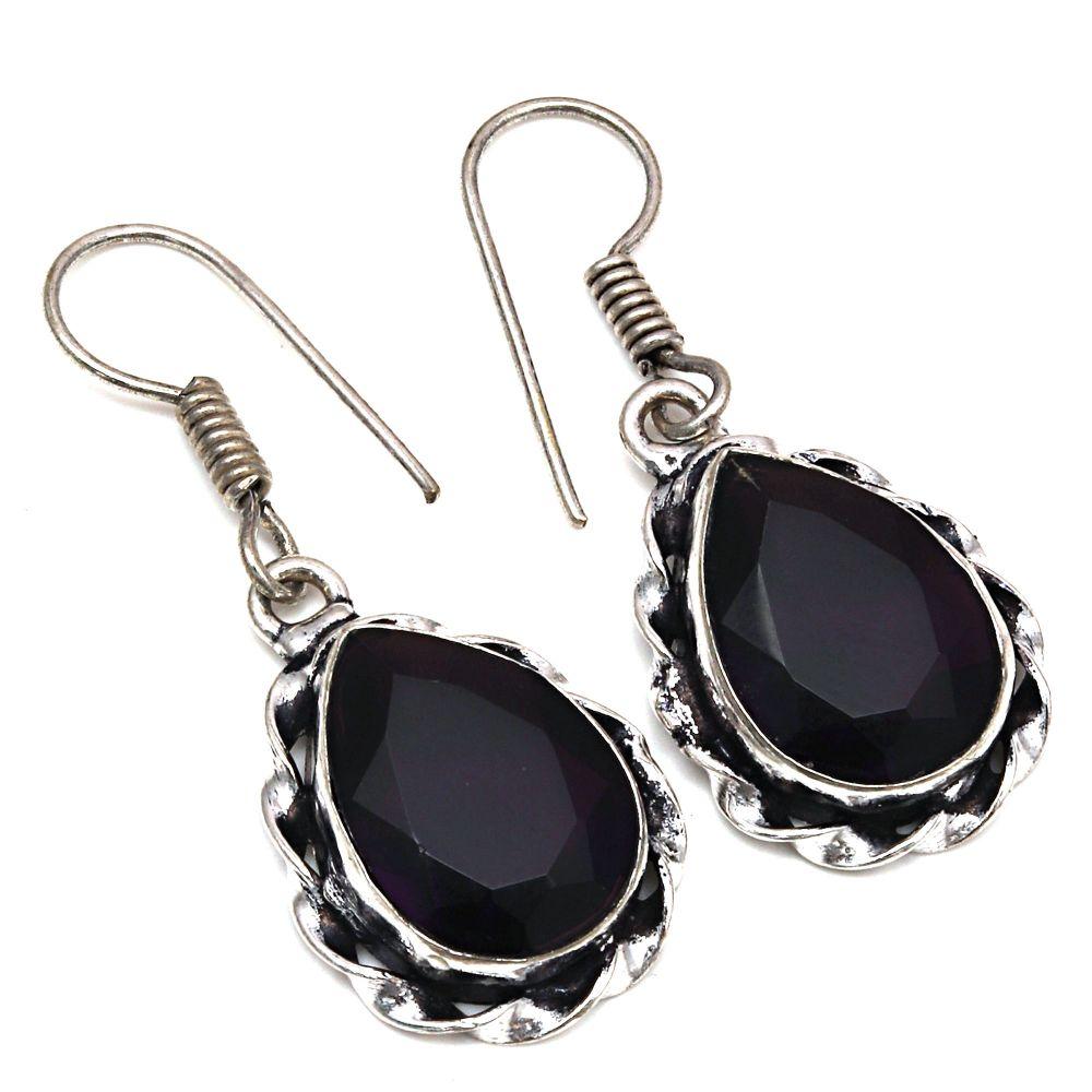 Черный Спинальный Драгоценный Камень Ручной Работы Подарок Для Нее Серебряные Ювелирные Изделия Серьги 1,5"