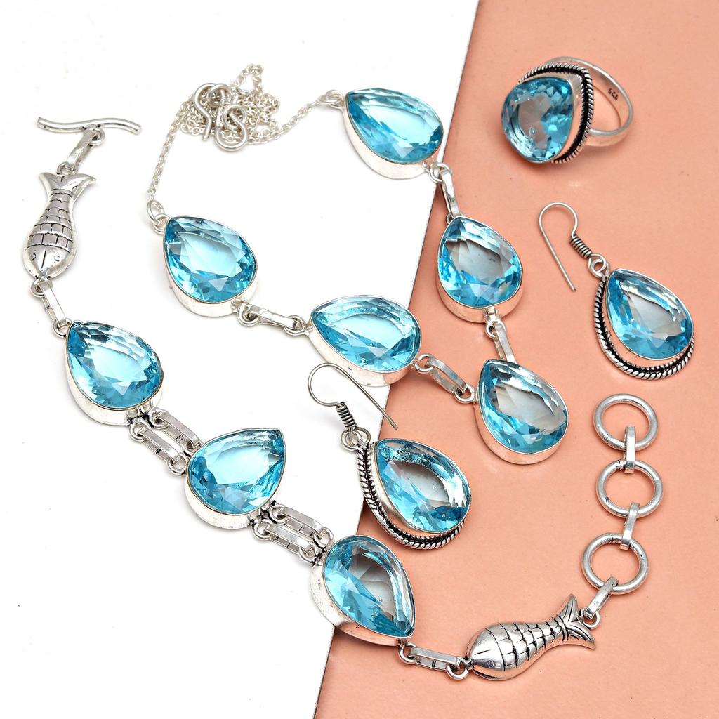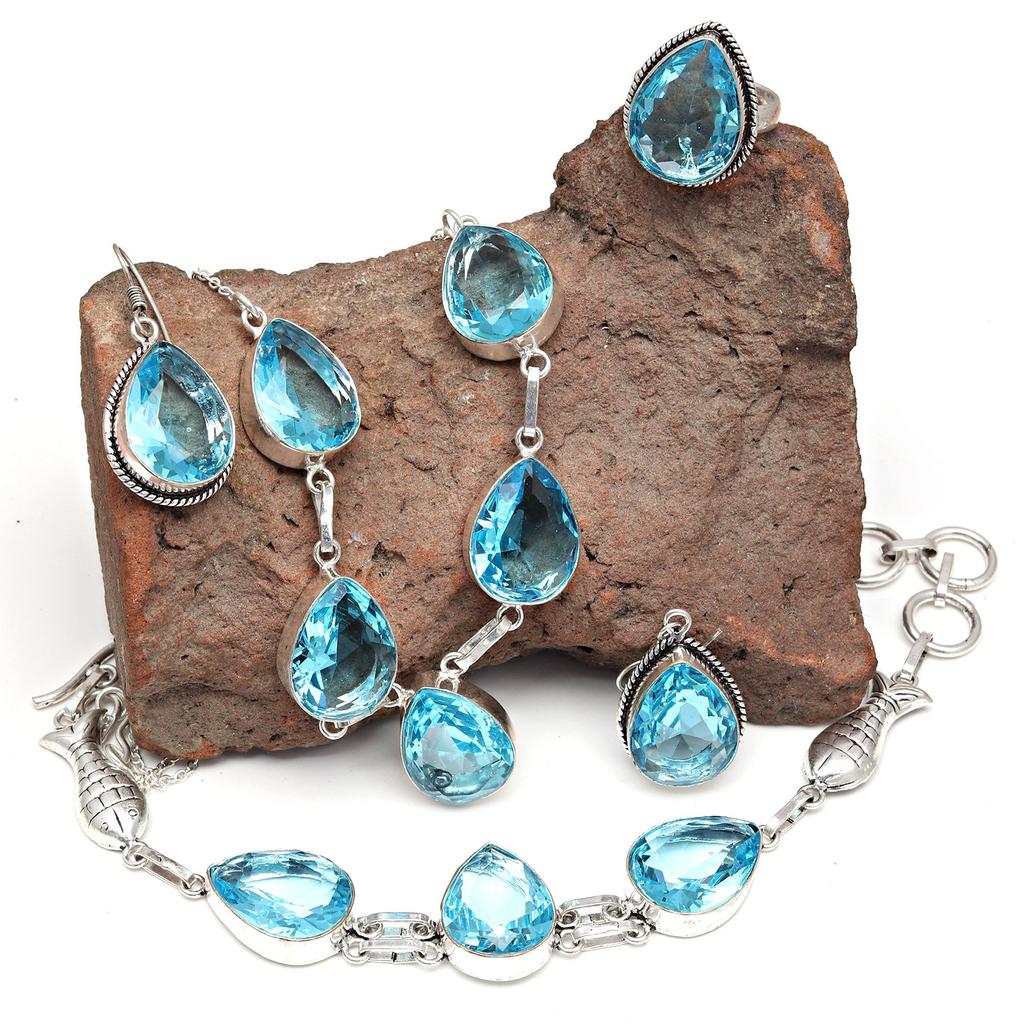 Топаз Blue London Ювелирный комплект Драгоценный камень Ожерелье Подарочный стерлинговый