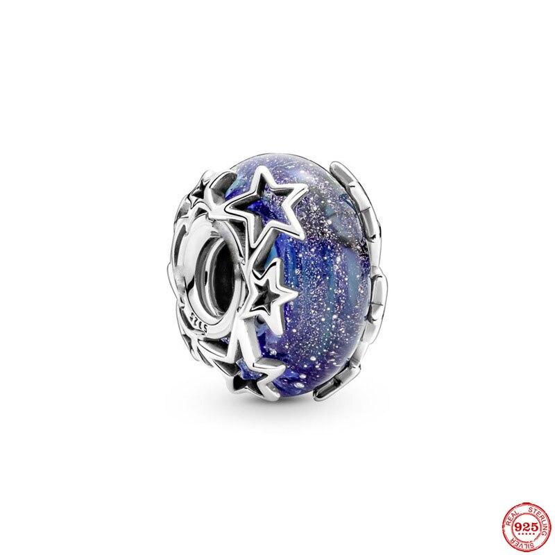 Новые оригинальные ювелирные изделия своими руками серебряного цвета с синей звездой из муранского стекла, подходят для европейских модных браслетов с подвесками P907