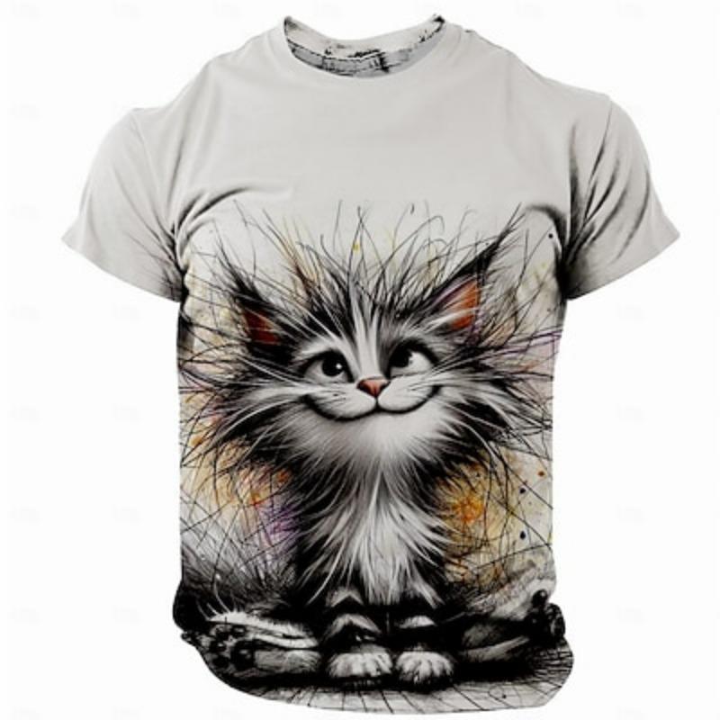 Футболка мужская с принтом Cat Funny Retro Vintage Casual 3D, футболка Street Casual Bar, футболка с коротким рукавом и круглым вырезом, одежда для весны и лета