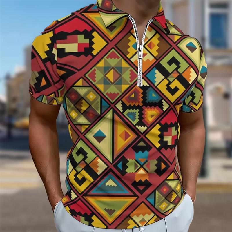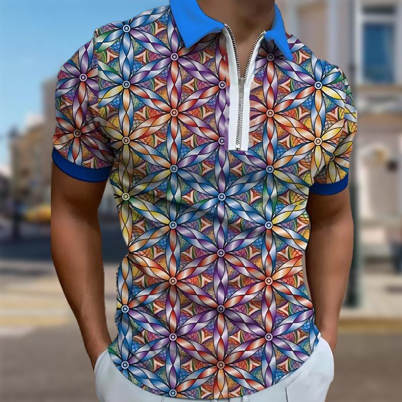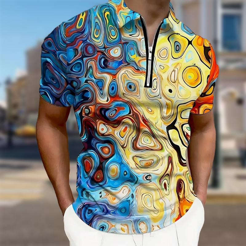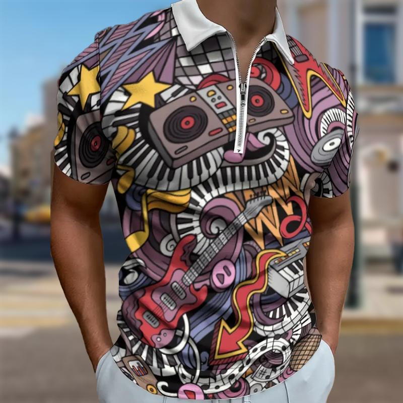 Мужская рубашка поло повседневная на молнии с коротким рукавом модная повседневная на молнии лето весна стандартный крой масляная живопись гитара сетка 3D принт рубашка