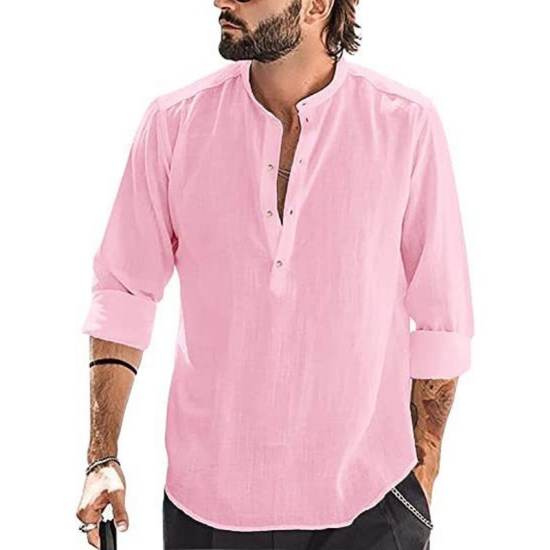 Повседневная мужская модная рубашка свободного кроя, мужская модная рубашка с воротником-стойкой из хлопка и льна, 5-точечный средний рукав, цветная рубашка