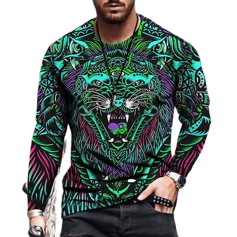 Мужская спортивная одежда, осенние футболки, круглый вырез, пуловер с изображением животных, длинный рукав, винтажная футболка с принтом тигра 3D