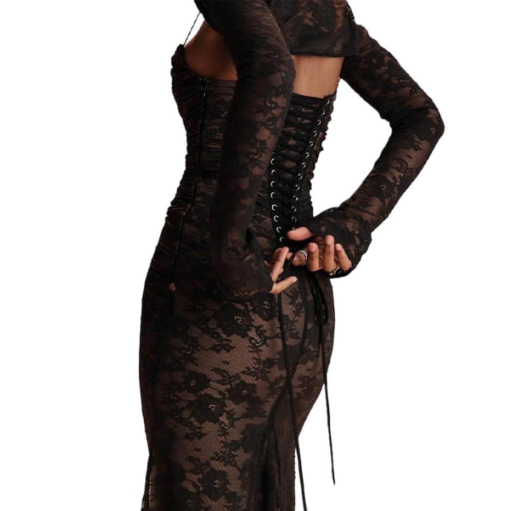 Платье Макси-платье, корсет из 2 предметов, накидка с цветочным принтом, мягкая сетка, сексуальное вечернее платье, шаль, кружевной корсет на шнуровке