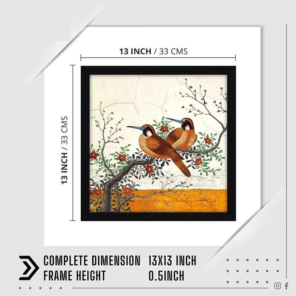 Бумага, настенная живопись «Две птицы», многоцветная, птица, 13X13 дюймов, набор из 1 шт.