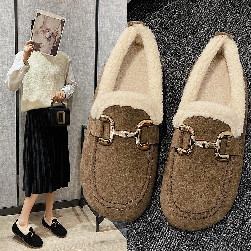 Плоская подошва с круглым носком осенне-зимние новые мягкие подошвы из мягкой кожи бархатные теплые маленькие кожаные туфли женские хлопковые туфли