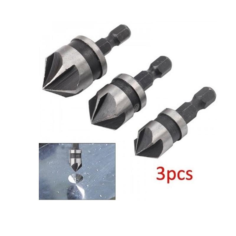Набор из 3 шестигранных зенковок для сверления по дереву и металлу с быстрой заменой сверл