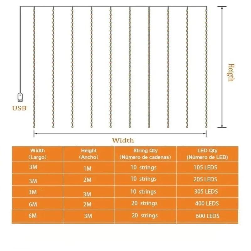 3M светодиодные гирлянды для занавесок, сказочные украшения, USB-гаирлянда, праздничная лампа, 8 режимов для дома, сада, рождественской вечеринки, нового года, свадьбы